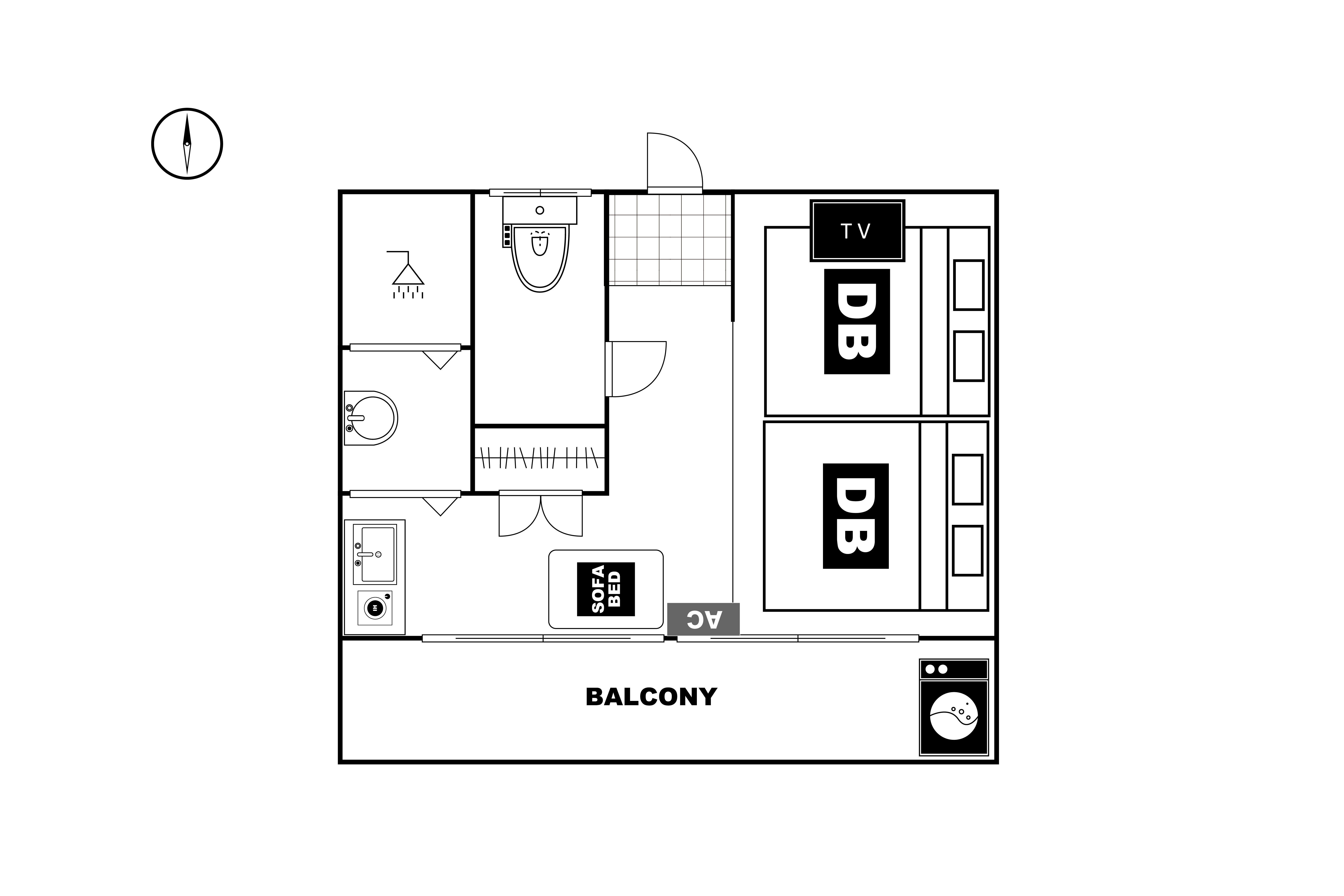 ダブルベッド×2
